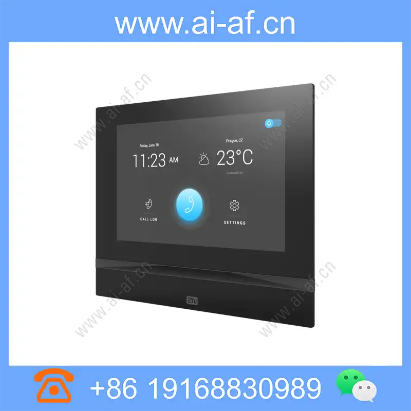 7 inch HD touchscreen Wide viewing angle Full screen video conversations Remote configuration Install with UTP cable and installation box 7 inch HD touchscreen The Indoor View is easy to operate thanks to the large display. Full screen video calls The previw of the incoming video call is enlarged. This is only possible with 2N intercoms. Stylish design The Indoor View has a beautiful and luxurious appearance. User privacy guaranteed The Indoor View works with its own operating system. This guarantees the privacy of the user. Remote configuration The Indoor View can be configured remotely. Access Control Indoor Display