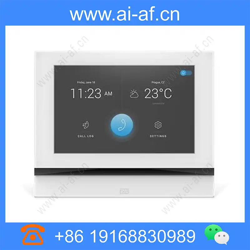 7 inch HD touchscreen Wide viewing angle Full screen video conversations Remote configuration Install with UTP cable and installation box 7 inch HD touchscreen The Indoor View is easy to operate thanks to the large display. Full screen video calls The previw of the incoming video call is enlarged. This is only possible with 2N intercoms. Stylish design The Indoor View has a beautiful and luxurious appearance. User privacy guaranteed The Indoor View works with its own operating system. This guarantees the privacy of the user. Remote configuration The Indoor View can be configured remotely. Access Control Indoor Display