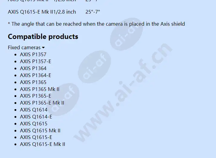Suitable for color and day/night cameras Telephoto, 12.5-50 mm lens IR-corrected lens P aperture Unobstructed view of megapixel lens With its HD optical design, Computar 12.5-50 mm P aperture provides a larger imaging circle, which can show excellent brightness and clarity in the corners and the entire image surface. Its focal length is 12.5-50 mm, and the lens aperture value (F value) is 1.4. Compatible cameras It is recommended to use Computar 12.5-50 mm P aperture with the following Axis cameras. The lens can be corrected day/night, so after the infrared filter of the day/night camera is separated, there is no need to make many adjustments. Computar 12.5-50 mm P aperture: Camera image sensor Angle of view * AXIS Q1615 Mk II 1/2.8 inch 25°-7° AXIS Q1615-E Mk II 1/2.8 inch 25°-7° * The