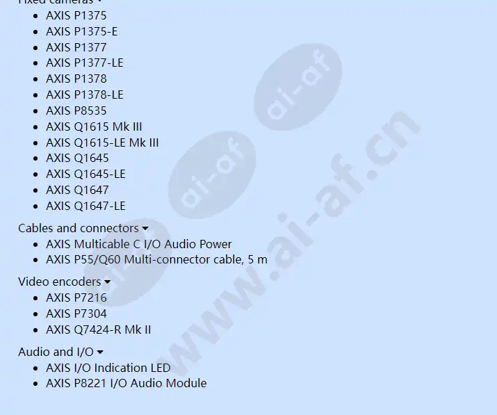 Axis male connector for expansion I/O ports. Pitch: 2.50 mm. 6-position terminal block. Pack of 10 pieces. Compatible products Modular cameras AXIS F41 Main Unit AXIS F44 Dual Audio Input AXIS F44 Main Unit AXIS FA54 Main Unit PTZ camera AXIS P5414-E AXIS P5415-E AXIS Q6042-C AXIS Q6042-S AXIS Q6044-C AXIS Q6044-S AXIS Q6045-C Mk II AXIS Q6045-S Mk II AXIS Q6055-C AXIS Q6055-S AXIS Q6075-S Security radars AXIS D2050-VE AXIS D2110-VE Fixed cameras AXIS P1375 AXIS P1375-E AXIS P1377 AXIS P1377-LE AXIS P1378 AXIS P1378-LE AXIS P8535 AXIS Q1615 Mk III AXIS Q1615-LE Mk III AXIS Q1645 AXIS Q1645-LE AXIS Q1647 AXIS Q1647-LE Cables and connectors AXIS Multicable C I/O Audio Power AXIS P55/Q60 Multi-connector cable, 5 m Video encoders AXIS P7216 AXIS P7304 AXIS Q7424-R Mk II Audio and I/O AXIS I/O
