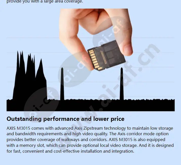 Super secret design HDTV 1080p / 2 MP Axis Zipstream technology Axis corridor mode Easy to perform embedded installation AXIS M3015 Network Camera is designed for quick flush installation. AXIS M3015 offers full frame rate HDTV 1080p in a small and compact design, suitable for fashion retail stores and other areas that require discreet surveillance. Designed for free decision making AXIS M3015 Stealth. Specifically designed for flush mounting in ceilings or walls, this small, stealthy camera resembles a spotlight. The cover is available in black and can be easily repainted to blend in with the environment in different places. Excellent quality You may have to work hard to find a video quality camera in this camcorder. The AXIS M3015 can provide 1080p video with a frame speed of FPS, with