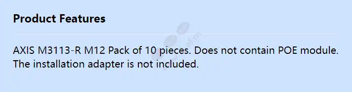 AXIS M3113-R M12 Pack of 10 pieces. Does not contain POE module. The installation adapter is not included.