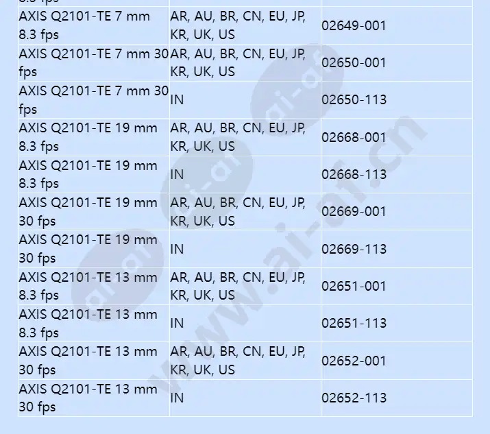 AXIS Q2101-TE Thermal Camera 02649-001 02650-001 02668-001 02669-001 02651-001 02652-001