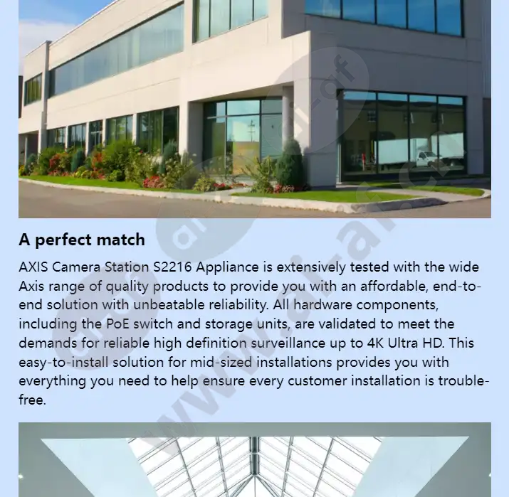 All-in-one recorder with integrated 16 channel PoE switch for high-definition surveillance All-in-one solution with integrated PoE switch Flexible storage options including RAID Ease of installation Validated with extensive support AXIS Camera Station licenses included AXIS Camera Station S2216 Appliance is an all-in-one recording solution with integrated PoE switch designed to deliver reliable high-definition surveillance. This easy-to-install recorder is available as a rack server with 16 video channels and includes a storage capacity of 8 TB plus the possibility to add extra hard disks. It comes with 16 AXIS Camera Station Pro licenses and preconfigured software to minimize installation time. A perfect match AXIS Camera Station S2216 Appliance is extensively tested with the wide Axis