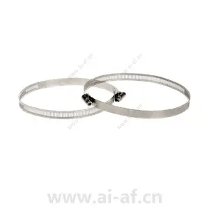1 pair marine-grade (SS316L) stainless steel straps with TX30 screw interface for ease-of-installation. Length 570mm (22.5"). Width 14.3mm (0.57"). Thickness 0.68mm (0.03"). Compatible with a wide range of Axis pole mounts. Pole diameter range 50-150mm (2"-6") when used with AXIS T91B47 Pole Mount.