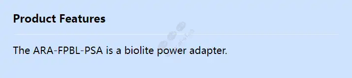 The ARA-FPBL-PSA is a biolite power adapter. Home Control Wi-Fi Alarm I/O 2/2