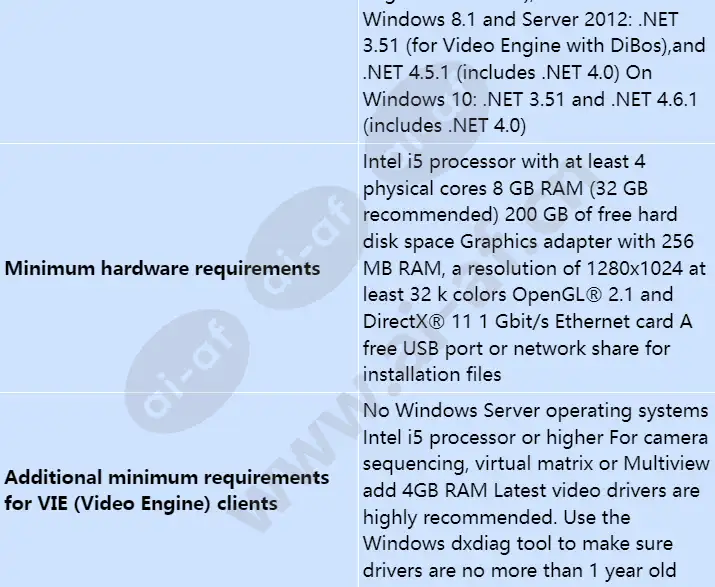 Distributed access control system with graphical alarm management Seamless integration and interaction with video, fire, intrusion and PA/VA systems via the common BIS platform High resilience thanks to a 4-tier system architecture and redundancy of critical components Integration of third-party products via open protocols and SDK Efficient enrollment process that makes onboarding faster and more secure Supported operating systems (standalone or client/server mode).Installations of BIS on other operating systems may succeed, but are entirely without warranty. Windows 7 SP1 (32 or 64 bit, Pro, Enterprise) Windows Server 2008 R2 SP1 (64 bit, Standard, Datacenter) Windows 8.1 (64 bit, Pro, Enterprise) Windows Server 2012 R2 (64 bit, Standard, Datacenter) Windows Server 2016 (64 bit, Standard
