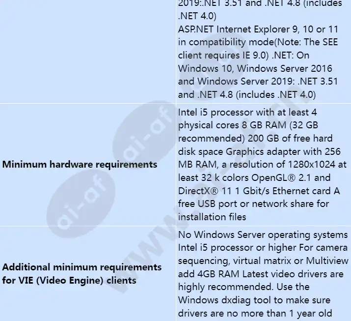 Integration of Bosch and third party systems via open interfaces and SDK All relevant information in one user interface, and intuitive operation via interactive maps and HTML5 action plans Fully embedded access control Full event log and audit trail for forensic investigations Scalable system that grows with your needs Supported operating systems (standalone or client/server mode).Installations of BIS on other operating systems may succeed, but are entirely without warranty. Windows Server 2016 (64 bit, Standard, Datacenter) Windows Server 2019 (64 bit, Standard, Datacenter) Windows 10 Enterprise LTSB (64 bit) Note: The default database delivered with this BIS Version is SQL Server 2017 Express edition with advanced services