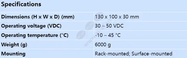 Capacitive touch Source selection Volume control Powered from PLM-8M8 Loop-through to connect with either more Wall Control Panels or Call Stations Dimensions (H x W x D) (mm) 130 x 100 x 30 mm Mounting type Rack-mounted; Surface-mounted Operating temperature (°C) -10 – 45 °C Operating voltage (VDC) 30 – 50 VDC Weight (g) 6000 g