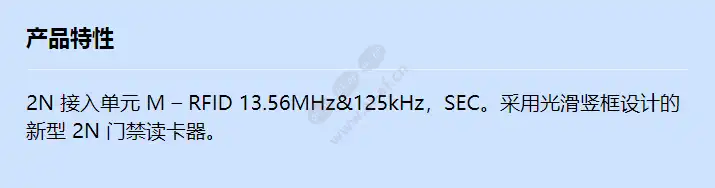 2N 接入单元 M – RFID 13.56MHz&125kHz,SEC。采用光滑竖框设计的新型 2N 门禁读卡器。