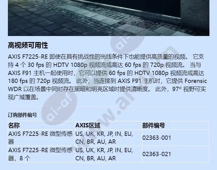 安讯士 AXIS F7225-RE 微型传感器 02363-001 02363-021