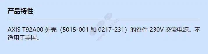AXIS T92A00 外壳(5015-001 和 0217-231)的备件 230V 交流电源。不适用于美国。