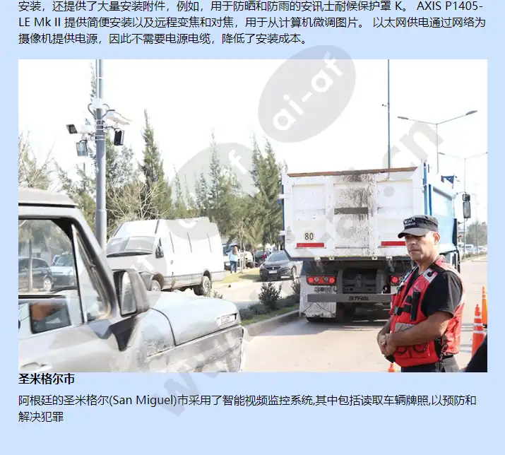-10 º C 到 50 º(14 ºF 到 122 ºF) HDTV 1080p,高达 25/30 fps 内置红外LED,10 米(33 英尺) 觅光者和 WDR – 宽动态猎影技术 Axis Zipstream technology 全天候功能 通过诸如觅光者和宽动态猎影技术 (WDR),筒型摄像机 AXIS P1405-LE Mk II 可提供分辨率为 HDTV 1080p 的很好图像质量,即使在复杂的光线条件下也是如此。 此外,摄像机还支持安讯士走廊模式以及精确光圈控制。 这种全天候摄像机的工作温度范围是 -10 º C 到 50 º(14 ºF 到 122 ºF),非常适合用于在停车场和服务站等空旷室外区域进行经济高效的全天候视频监控,同时还非常适合一般室内监控。 很好图像质量 借助变焦、精确光圈镜头,AXIS P1405-LE Mk II 能够以高达 30 帧/秒及 HDTV 1080p/200 万像素分辨率提供很好的图像质量。 借助精确光圈控制,可提供更好的景深、分辨率、图像对比度和清晰度。 这款设计紧凑、经济高效的摄像机提供了多个 H.264 和 Motion JPEG 流,这些流可单独进行优化,以减少带宽和提高存储效率。 内置红外LED AXIS P1405-LE Mk II 集成了隐式高能效红外LED,如果发生事件或用户请求,摄像机可提供全黑场景的自动照明。 肉眼不可见的红外LED 照明是在高达 10 米(33 英尺)的范围内发现物体的理想选择。 觅光者与宽动态范围 (WDR) P1405-LE Mk II 采用宽动态猎影技术,可在光线变化强烈的场景下提供理想平衡的视频画质,而安讯士觅光者技术则可在光线条件较差的情况下提供杰出的画面可用性能。该摄像机在处理 WDR 和微光条件之间可进行无缝切换。 边缘存储和Zipstream 借助前端存储,可以直接录制