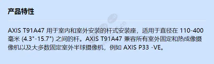 型号:AXIS-T91A47-POLE-MOUNT-110-400MM
