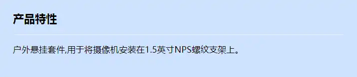 户外悬挂套件,用于将摄像机安装在1.5英寸NPS螺纹支架上。