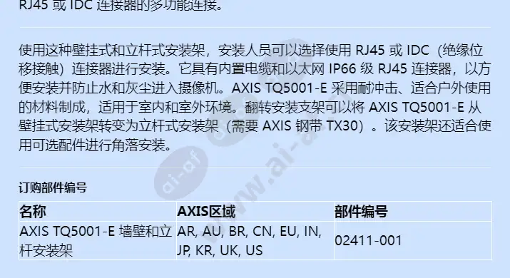 型号:AXIS-TQ5001-E-WALL-AND-POLE-MOUNT