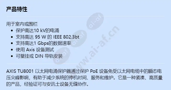 型号:AXIS-TU8001-ETHERNET-SURGE-PROTECTOR
