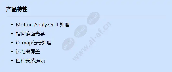 Motion Analyzer II 处理 指向镜面光学 Q-map信号处理 远距离覆盖 四种安装选项 报警继电器触点类型 NC/NO 检测半径(m) 60 m 尺寸(高 x 宽 x 深)(毫米) 146 x 95 x 63.50 毫米 输入电压(VDC) 6 – 15 VDC 安装高度(米) 2 – 2.60 米 工作温度(°C) -40 – 49 °C 防拆继电器触点类型 NC