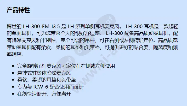 博世 Bosch LH-300-EM-I3.5 LH 系列单侧耳机麦克风
