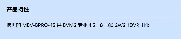博世的 MBV-BPRO-45 是 BVMS 专业 4.5、8 通道 2WS 1DVR 1Kb。