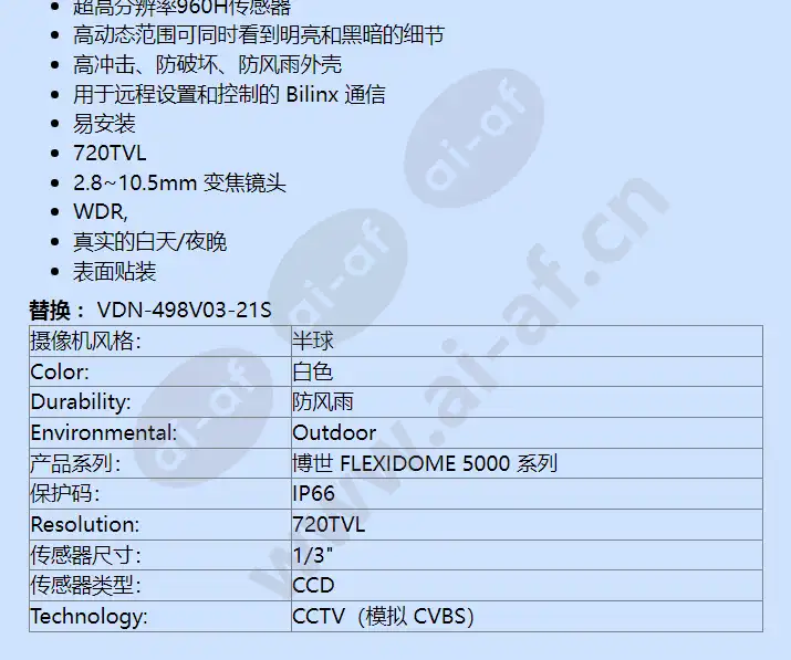 博世 Bosch VDN-5085-V321S 720TVL 室外闭路电视模拟安全摄像机 F.01U.278.735