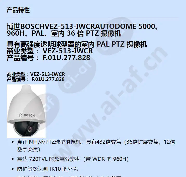 博世 Bosch VEZ-513-IWCR AUTODOME 5000 云台摄像机 F.01U.277.828 F01U277828