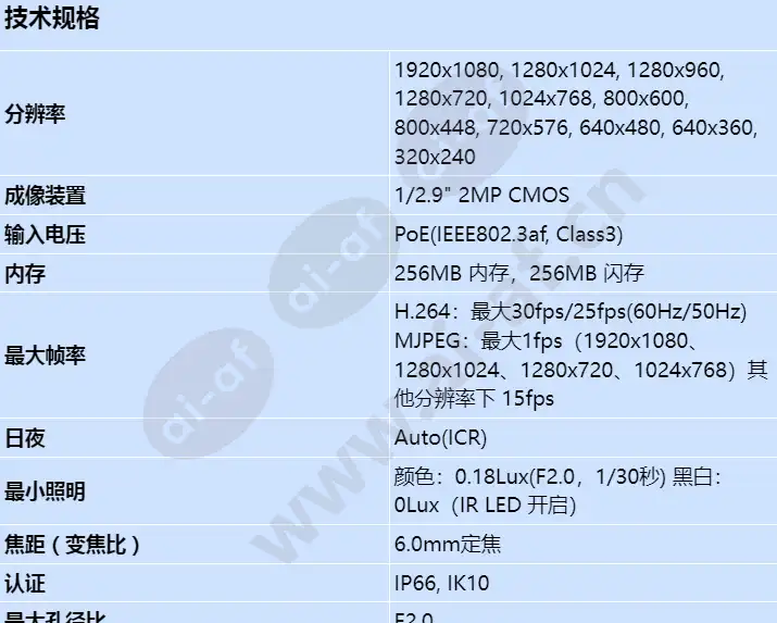 • 最大2百万像素(1920 x 1080)分辨率 •内置6mm定焦镜头 • 最大30fps@所有分辨率(H.264) • H.264、支持 MJPEG 编解码器、多流 •白天夜间(ICR)、WDR (120dB) •篡改、运动检测 • microSD/SDHC/SDXC 内存插槽(最大32GB)、PoE •走廊视图,WiseStreamII支持 •红外可视长度30m •IP66、IK10 支持 ※ 仅适用于部分地区 精彩摄像机,重要功能 最大2百万像素(1920 x 1080)分辨率 H.264, MJPEG codec 最大30fps@2MP (H.264) 真正的WDR(120dB)、WiseStreamⅡ 走廊视图,LDC(镜头畸变校正) 移动检测、防篡改 SD/SDHC 内存插槽(最大32GB)、PoE IP66 / IK10 support(Vandal-Resistant cameras) 丰富的室内外产品阵容 新推出的 L 系列摄像机由价格非常实惠且具有基本功能的摄像机组成。广泛的产品系列包括固定镜头和变焦镜头(具体取决于镜头类型),以及筒型、半球型和防破坏半球型摄像机。这些摄像机采用现代设计,可在室内和室外使用。 真正的宽动态(120dB) L系列摄像机内置的真正的WDR功能即使在具有挑战性的环境下也可以生成自然的图像,没有任何图像丢失,例如当背景比主要物体更亮时,当图像因强光而被阴影遮挡时,当屏幕亮度差距较大时。此外,它还可以显着减少运动模糊的影响,这是传统 WDR 的一个关键弱点。 使用WiseStreamⅡ提高带宽 WiseStreamⅡ是一种基于运动分析的先进视频压缩技术,可在保持视频质量的同时减少所需的数据量。 WiseStreamⅡ可降低噪声并最大程度地减少图像质量下降,这是传统图像压缩伪影和弱光环境下图像噪声的常见问题。 走廊景观 在垂直形状