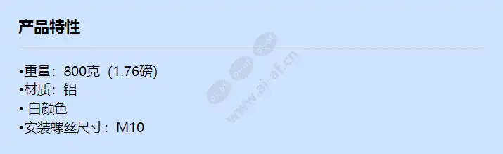 •重量:800克(1.76磅) •材质:铝 • 白颜色 •安装螺丝尺寸:M10 颜色 白色的 材料 铝 RAL 代码 RAL9003 产品尺寸/重量 ø140x305mm(ø5.51x12.01"), 800g(1.76lb) 安装螺丝尺寸 M10 支持的产品 - 悬挂适配器:SBP-120HMW/140HMW/160HMW1/180HMW1等 ※ 如需更多兼容型号,请访问我们的网站或使用 Toolbox