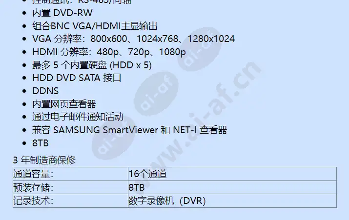 三星韩华 Samsung Hanwha SRD-1670DC-8TB H.264 16通道 数字录像机
