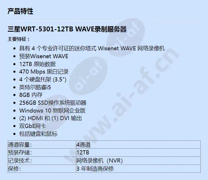 三星韩华 Samsung Hanwha WRT-5301-12TB WAVE 录制服务器