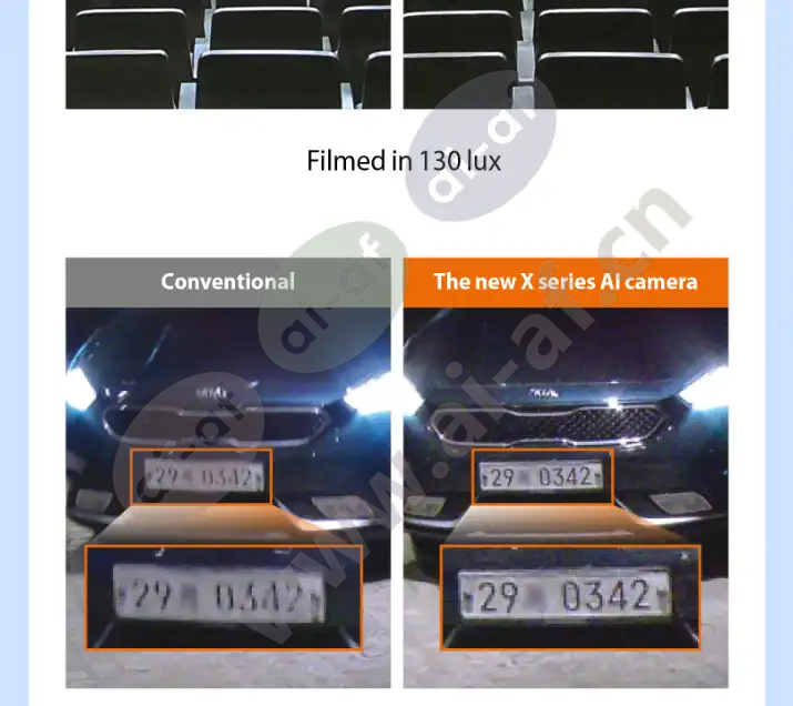 • 4MP 分辨率 • 2.8~10mm (3.6x) 电动变焦 •颜色:0.038 勒克斯(F1.4、1/30 秒、30IRE)、0 勒克斯(IR LED 开启) •最大60 fps (H.265/H.264) • WiseIR:红外可视长度 40 m (131.23 ft) • 白天夜间 (ICR)、极端 WDR (120 dB) •硬涂层半球罩 •WiseNRⅡ(基于AI引擎)、WiseStreamⅢ(基于AI引擎) •基于人工智能引擎(NPU)的分析事件:对象检测(人/脸/车辆 - 汽车、卡车、公共汽车、自行车、摩托车/车牌), IVA(虚拟线路/区域、进入/退出、徘徊、方向、入侵) •分析事件:散焦检测、运动检测、篡改、雾检测 音频检测、声音分类、震动检测、出现/消失 • IP66, IP67, NEMA4X, IK10 基于AI减少误报 新款X系列摄像机利用人工智能对人、车辆、人脸、车牌等进行实时检测和分类。摄像机的深度学习算法具有从 2MP 到 4K 的一系列可用分辨率,可以可靠地识别多个不同的物体。减少由于没有有趣的运动(例如被风吹动的树木、阴影或动物)而导致的误报。分析成为操作员可靠的第二双眼睛,帮助他们了解在哪里寻找重要的实时事件,同时使事件后查看搜索变得高效。 基于人工智能的物体检测提高运营效率 包括信息(人、脸、车辆、车牌)在内的元数据发送到后端服务器,用于提取特定事件的信息。运营商可以在后端服务器上搜索AI事件。这极大地提高了搜索效率并减少了搜索事件所花费的时间。也可减少操作人员监控现场时的误报。 基于AI的WiseNRII和快门控制 WiseNRII 是一项新的增强功能,它利用人工智能来识别物体运动并减少嘈杂、低光环境中的模糊。基于人工智能的快门技术根据运动中的分类物体和场景中的照明条件自动调整快门速度,以减少运动模糊并提供最清晰的图像。 基于