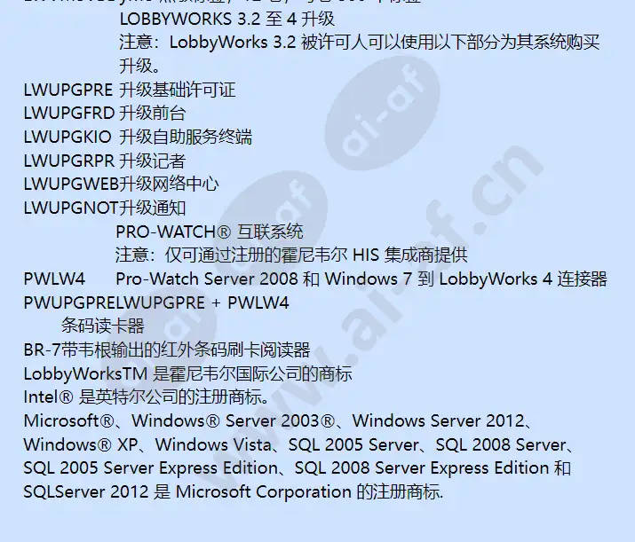 LobbyWorks 访客管理套件 通过提供一种简单有效的方式来注册、标记和跟随访客,增强您在访问控制和周边安全方面的投资。 它使您能够生成详细的访客流量报告并执行访客/承包商安全策略。 强大的功能和灵活性使 LobbyWorks 非常适合使用 Express Edition 的小型单站点部署或使用 Premier Edition 的基于 WAN 的区域网络部署。系统产品允许您定制访客管理系统以很好地满足您的需求。 功能特点 Pre-registration 大堂接待员进入系统 通过 POP31 集成 Outlook® 日历 用于主机预注册的 Web 中心附加组件 1,2 发送给访客的电子邮件预登记通知上的条形码可以在自助服务机扫描以便快速处理 登记 在 20 秒或更短时间内处理大多数访客 拍摄访客的照片和/或签名 扫描到达访客的照片身份证或名片 打印专业彩色访客证,注明有效期、参观区域、接待人员、参观目的 发布 Pro-Watch® 访问控制突袭 主机列表 管理员或大堂接待员进入系统 与活动目录集成 1 与 Pro-Watch 整合 现在提供 Premier 和 Express Edition 1 仅限高级版 2 分开售卖 系统最低要求 零件号 描述 软件优先许可 注意:必须先填写客户信息表,然后才能处理订单。 LWVMSEED 快捷版(含500台主机),1个Front Desk许可证,1个 Reporter许可证,Badge Reprint license,Scheduler license, and Administrator license LWVMSPRE Premier Edition(包括 5,000 台主机)、1 个 Front Desk 许可证、 1 个 Reporter 许可证、Badge Reprint 许可证、Scheduler 许可证、 和