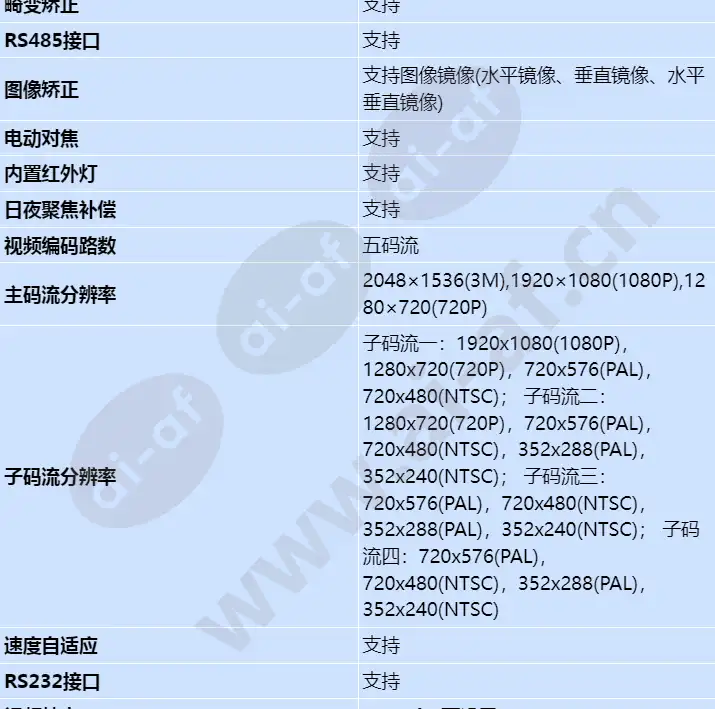 支持4 TOPS算力; 支持热度图、车辆、交通数据统计; 支持背光自适应、透雾自适应、速度自适应; 采用1/1.8" CMOS; 软件定义,支持算法在线加载与升级; 数字宽动态超级宽动态,强反差场景还原真实细节; 芯片 Hi3559AV100 算力 4 TOPS 内存 DDR4 4.0 GB Flash SPI NAND闪存512.0 MB Sensor最大图像尺寸 3MP 2048(H)*1536(V) Sensor感光面尺寸 1/1.8" 最低照度 彩色:0.002 lux @ (F1.2, AGC ON),黑白: 0Lux (红外灯开启) 镜头焦距 11-40mm 镜头视角 水平:10.6°(T端)~33.2°(W端);垂直:8°(T端)~24.9°(W端) 红外灯补光距离 30m 视频编码格式 MJPEG / H.264 / H.265 音频编码格式 G.711a / G.711u / G.726 / OPUS 热度图 支持 卡口业务 ITS-卡口过车抓拍,ITS-卡口占用公交车道检测,ITS-卡口违法变道检测,ITS-卡口逆行检测,ITS-卡口压线检测,ITS-卡口机占非检测,ITS-卡口超/低速抓拍检测,ITS-卡口黄网格违停抓拍检测,ITS-卡口线圈/雷达速度检测,ITS-卡口违法掉头检测,ITS-卡口占用应急车道检测,ITS-卡口车辆统计检测 车辆 中国大陆牌识别,中国香港车牌识别,车牌增强,车身颜色检测,车型检测,车款检测 交通数据统计 车流量统计,非机动车流量统计,行人统计 RS485接口 支持 开关量接口 支持 以太网络接口 支持 以太网络接口数量 1个 以太网络接口带宽 1个RJ45 10M/100M/1000M自适应以太网口 光网络接口 1个SFP插槽 电源类型 AC100~240V 电源功耗 最大功耗:40W,典型功耗:18W 工作温度