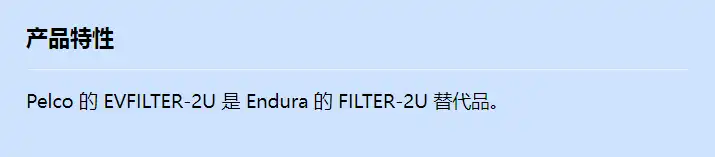Pelco 的 EVFILTER-2U 是 Endura 的 FILTER-2U 替代品。