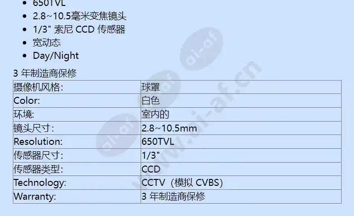 Pelco FD2-V10-6 650TVL 室内半球闭路电视模拟安全摄像机 Pelco FD2 系列是 Pelco 的通用室内固定半球摄像机。它旨在在各种条件下提供很好的图像质量。摄像机的尺寸很有吸引力,结合其众多功能,使其成为大多数室内应用的理想摄像机。Pelco FD2 系列半球摄像机将摄像机和镜头集成到一个小型外壳中,多功能室内外壳,可直接安装到天花板或墙壁上。 Pelco FD2 系列具有 3 轴摄像机和镜头定位系统,能够进行各种平移和倾斜角度。Pelco FD2 系列提供四种高分辨率摄像机选项,适合各种室内环境。 配备带自动光圈的高分辨率 (650 TVL) 彩色摄像头,电子日/夜功能,以及固定或变焦镜头。该摄像机适用于大多数固定照明条件下的一般应用。其完整的功能可确保在一致的光线下图像始终清晰锐利。 主要特征: 650TVL 2.8~10.5毫米变焦镜头 1/3" 索尼 CCD 传感器 宽动态 Day/Night 3 年制造商保修 摄像机风格: 球罩 Color: 白色 Environmental: 室内的 镜头尺寸: 2.8~10.5mm Resolution: 650TVL 传感器尺寸: 1/3" 传感器类型: CCD Technology: CCTV(模拟 CVBS) Warranty: 3 年制造商保修