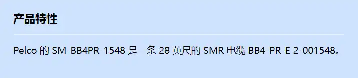 Pelco 的 SM-BB4PR-1548 是一条 28 英尺的 SMR 电缆 BB4-PR-E 2-001548。