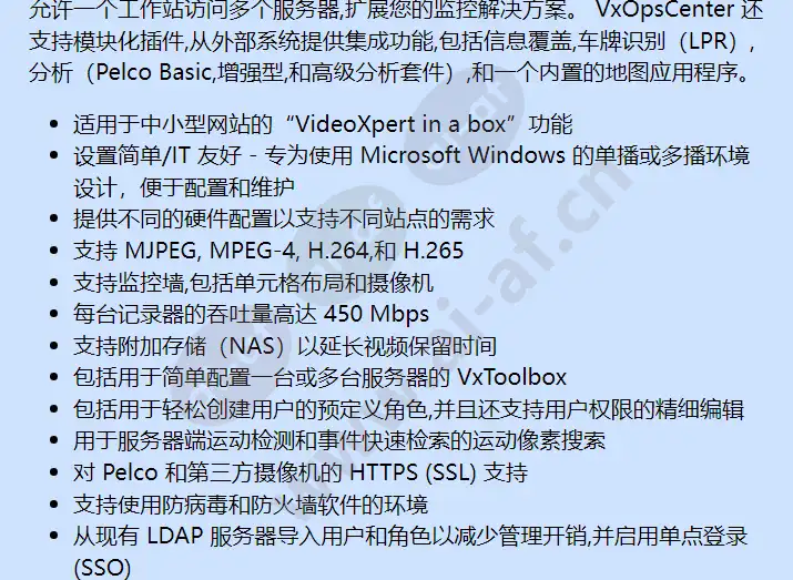 Pelco 的 VXP-P2-48-5N 是一款 Power 2 Server RAID 5 网络视频录像机,48TB。 VideoXpert 是一个单一盒子中的视频管理系统 (VMS),专为在小型或中型应用程序中轻松设置和可靠监控而设计。专为 Windows 平台设计,VideoXpert 易于安装,快速设置,并提供直观的界面,帮助操作员使用系统捕获的视频。 VideoXpert 在定制的硬件解决方案或软件分发中可用,以支持您现有的 VMS 基础设施。 VideoXpert 提供选项来支持您需要的吞吐量;和 RAID 6 中的不同存储量,RAID 5,或 JBOD 安排以满足您的保留需求,冗余,和容错。软件许可按渠道运作,这样您就不会为所需的解决方案多付钱。系统支持单播和组播两种传输方式,轻松适应您的网络方案。 VxPro 包括 VxToolbox,一个易于使用的 Windows 应用程序,使用户能够在本地或远程快速轻松地配置整个服务器和摄像机网络。 VxPro 具有预定义的角色,围绕标准监视操作设计,使用户创建和分配变得快速和容易。随附的 VxOpsCenter 客户端软件提供易于使用的界面,因此您几乎无需培训即可使用 VideoXpert。您可以在多系统访问模式下运行 VxOpsCenter 客户端,允许一个工作站访问多个服务器,扩展您的监控解决方案。 VxOpsCenter 还支持模块化插件,从外部系统提供集成功能,包括信息覆盖,车牌识别(LPR),分析(Pelco Basic,增强型,和高级分析套件),和一个内置的地图应用程序。 适用于中小型网站的“VideoXpert in a box”功能 设置简单/IT 友好 - 专为使用 Microsoft Windows 的单播或多播环境设计,便于配置和维护 提供不同的硬件配置以支持不同站点的需求 支持 MJPEG