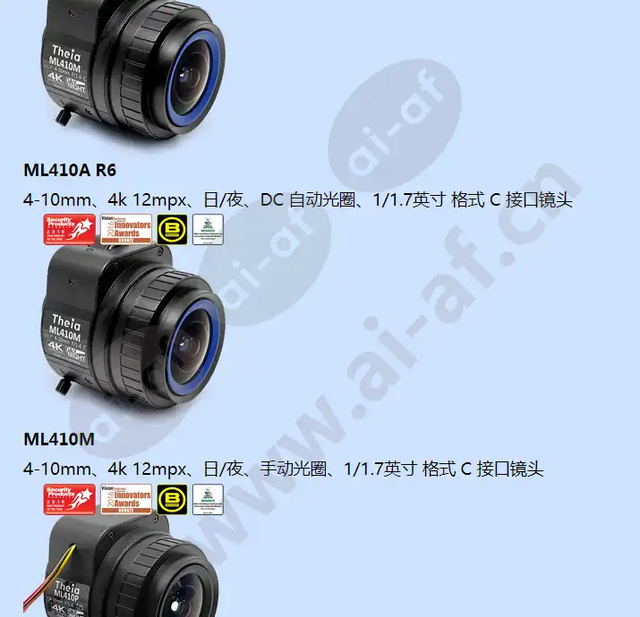 美国 Theia ML410P R6 4-10mm 4k 12 MP 日/夜 精确光圈 1/1.7 英寸 格式 C 接口 镜头