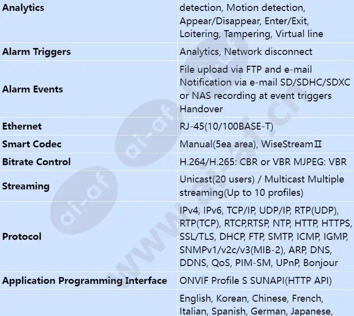 • Exchangeable 2 x 5MP lens modules (2 x 5MP resolution) • Max. 30fps@all resolution (H.265 / H.264) • WDR 120dB • 3.7mm, 4.6mm, 7mm fixed lens (5MP module) • H.265, H.264, MJPEG codec, Multi streaming support • Video analytics, WiseStream II • Micro SD / SDHC / SDXC memory 2 slots • IP66, IK10, PoE 5MP image quality with dual lens camera PNM-9000VD delivers 5MP image quality and modular lens configuration and supports 30fps image capture and true WDR(120dB) without compromising frame rate for each of its 5MP sensors. It is able to simultaneously monitor angles instead of installing multiple cameras. Selectable 5MP fixed lens (Optional) According to the desired direction and viewing angle, user can select lenses 3.7mm, 4.6mm, 7.0mm. Resolution 2560x1920, 2560x1440, 1920x1080, 1600x1200