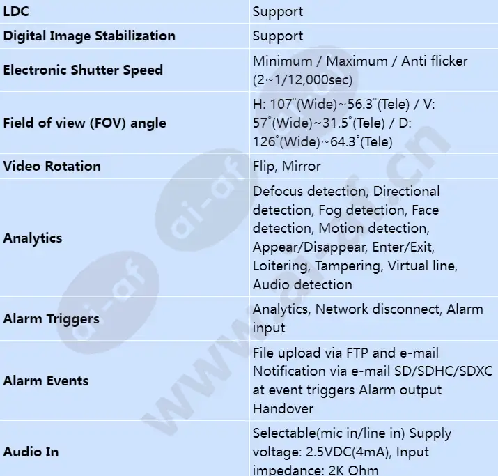 • Motorized PTRZ support • Maximum 60fps@2MP(H.265, H.264) • 3~6mm(2x) motorized varifocal lens • H.265, H.264, MJPEG codec, Multi streaming • Video analytics, WiseStreamⅡ • IP66, IK10, NEMA4X Remote motorized PTRZ control for easy installation The PNM-9084QZ1 has become more compact and lighter to make installation a lot easier even on a ladder. Both PNM-9084RQZ1 and PNM-9085RQZ1 support remote PTRZ (Pan, tilt, rotate and zoom) setup, saving installers time and effort of making adjustments on a ladder to change the setting. More compact and lighter camera PNM-9084QZ1 became compact and lighter for easier installation. It’s cost-efficient four channel PTRZ camera. Imaging Device 1/2.8" CMOS x 4CH Resolution 1920x1080, 1280x1024, 1280x960, 1280x720, 1024x768, 800x600, 800x448, 720x576