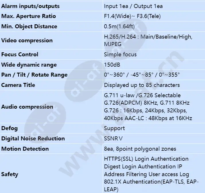 • Max. 2Megapixel resolution • 0.015Lux@F1.4 (Color), 0.0015Lux@F1.4 (B/W) • Day & Night (ICR), WDR (150dB) • Hallway View, WiseStreamII Support • Video & audio analytics, Audio playback • DIS and shock detection with built-in gyro sensor • Modular structure, PoE, 12VDC • IP52, IK10 2MP / 5MP NW Modular Camera Faster installation, reduced costs Advanced performance, multiplied values 2MP / 5MP NW Modular Camera Max. 2Megapixel & 5Megapixel resolution Video & audio analytics, Audio playback DIS and shock detection with built-in gyro sensor Modular structure and motorized PTRZ Installer friendly package design IP67/IP66/IP6K9K, IK10+, NEMA4X(XNV-6081Z/8081Z) The most powerful chipset WISENET 5 Wisenet X series is supercharged by the most powerful chipset ever incorporated into a full camera