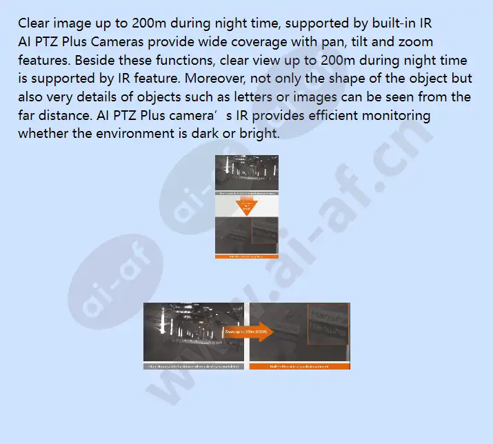• Max. 2MP resolution • 4.25~170mm(40x) zoom (digital 32x, total 1280x zoom) • Day & Night (ICR), extreme WDR, DIS (Built-in gyro sensor) • Intelligent Analytics, Object auto tracking (Person/Vehicle), Target lock tracking • H.264, H.265, MJPEG codec, WiseStream II • IP66, IK10, NEMA4X, NEMA-TS 2 (2.2.8, 2.2.9) • PTZ PLUS Design applied (Compact, Lighter, Simple cabling) AI based enhanced operational efficiency With the integration of AI, real-time detection and classification of people, vehicles and face, license plate are now possible. This filters out unnecessary movements such as waving leaves, shadow or animals and therefore the operational efficiency increases when multiple objects appear. In other words, non AI cameras based on motion detection detect multiple objects as a single