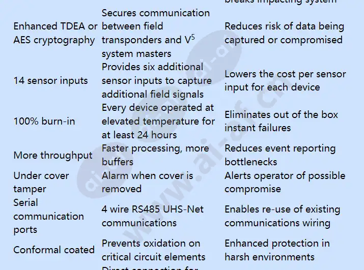 Vindicator AES-1500 Field Panels The UHS-1500 is the latest member of the UHS-Net device family that provides redundant Ethernet communications capability and additional sensor inputs. The devices enable users to leverage their existing network infrastructure and connect more sensors to the Vindicator systems. These new features will allow users to install systems more quickly and to reduce their capital investment. The UHS-1500 provides natural migration for existing UHS-6842, UHS-8400 and DES6842T transponder and gateway devices, demonstrating Honeywell’s commitment to helping our customer preserve their investment in Honeywell solutions. Features FEATURES FUNCTION BENEFITS Dual wire or fiber Ethernet ports Provides both physical and logical redundancy Reduces risk of malicious or