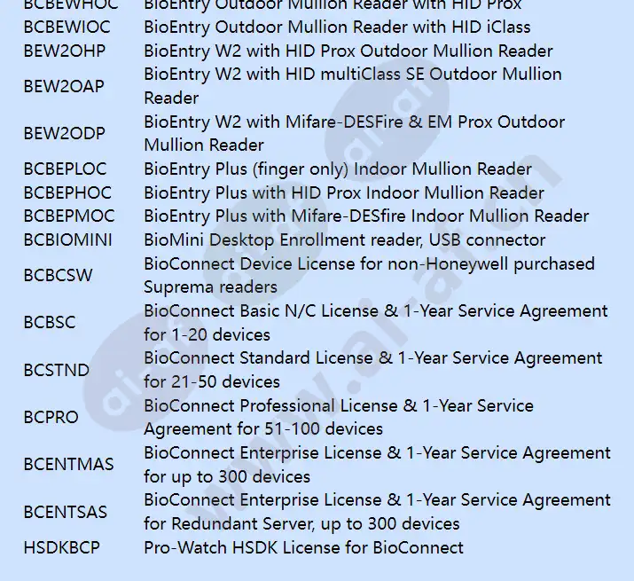 Honeywell BCBSC BioConnect Basic N/C License & 1-Year Service Agreement for 1-20 devices