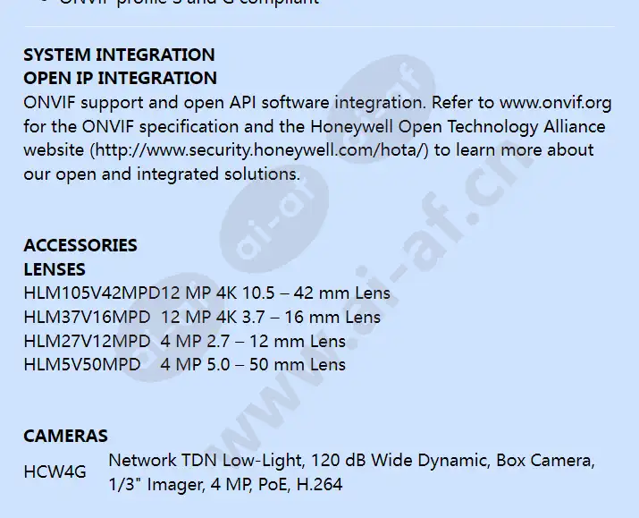 Honeywell is taking quality and reliability to the next level with the New equIP® range of ultra low-light box IP cameras. The 1080p 2 MP/4 MP box cameras offer high definition resolution at full frame rate, progressive scan technology, and edge enhancement for outstanding picture clarity. ONVIF (Profile S/G) compliance ensures hassle-free, flexible system integration. Superior Image Quality Full HD 1080p 25/30 fps image with a 1/2.7" or 1/2.8" 2 MP sensor, or 1/3" 4 MP sensor True WDR, up to 140 dB, ensures glare-free images True Day/Night capability, vivid colour pictures by day and clear black?and-white pictures at night with ICR Ultra Low Light technology is able to capture high quality colour images in low light environments Excellent low-light performance with 3D noise reduction