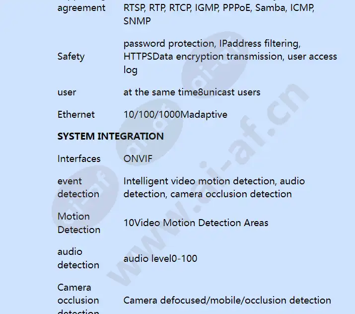 HICC-P-0100EIRV D1/ SVGA Infrared Bullet Network Camera and Advantages Performance Features and Ordering Information Application field Honeywell HICC-P-0100EIRV supports D1/SVGA @ 25/30fps real-time video, H.264 compression, built-in infrared light, PoE power over Ethernet and ONVIF interface, and can still display ultra-high image quality. It is very suitable for high-security monitoring fields such as subways, banks, railways, financial institutions, government buildings, and airports. Main Features D1 @ 25/30fps;SVGA @ 25/30fps H.264/ MPEG4/ MJPEG three streams at the same time H.264 High Profile – Efficient compression, effectively saving bandwidth and storage space Built-in 20m infrared light Real day and night conversion with infrared filter Support PoE(Power over Ethernet) Power