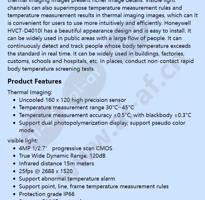 Honeywell HVCT-D4010I Thermal imaging human body temperature measurement dual-light infrared dome camera