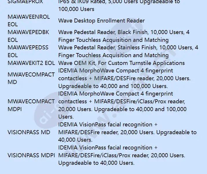 Honeywell SIGMALPBIO IDEMIA SIGMA Lite Plus Biometric Only Reader 3000 User Capacity Upgradeable to 10000 Users