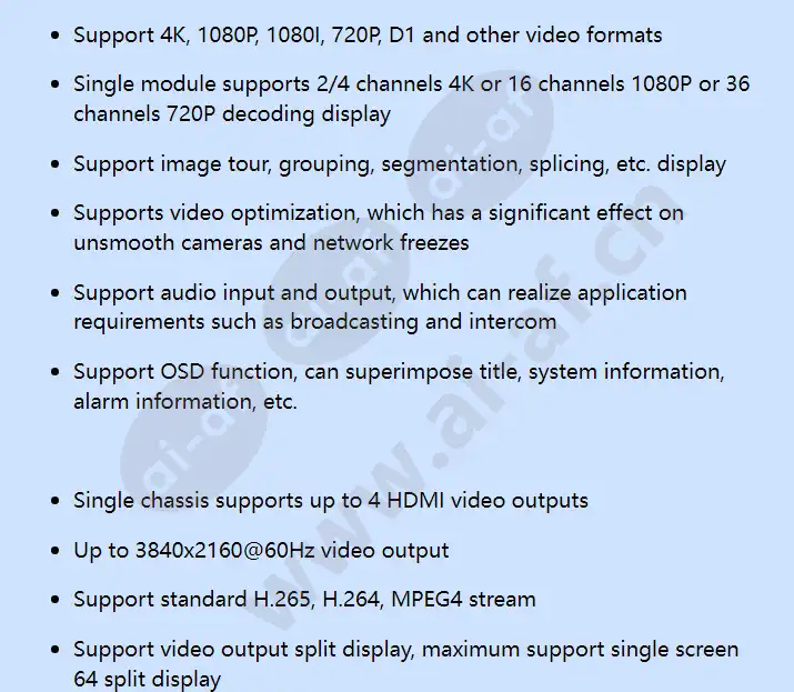PM60MA-4H-HSS 4-channel high-definition network digital matrix is a high-definition network wall-mounting device with advanced technology, practical functions and convenient use. This product has complete functions, is stable and reliable, and is easy to operate. It is directly connected to the output of the display device and is suitable for most network video security occasions that require image decoding on the TV wall PM60MA-4H-HSS 4-channel high-definition network digital matrix can decode and restore the compressed video data transmitted by the front-end high-definition network camera or platform software through the network to high-definition digital signal output to the display device. It supports multiple display methods such as image tour, grouping, segmentation, and grouping