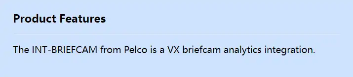 The INT-BRIEFCAM from Pelco is a VX briefcam analytics integration.